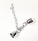Fermoir mousqueton métal inox avec embouts cloches et chaînette de rallonge.